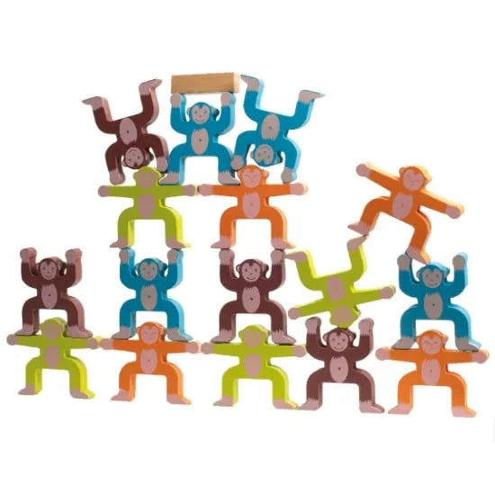 • 🐒 Set of 16 wooden monkeys & blocks – stack, balance, and create towers